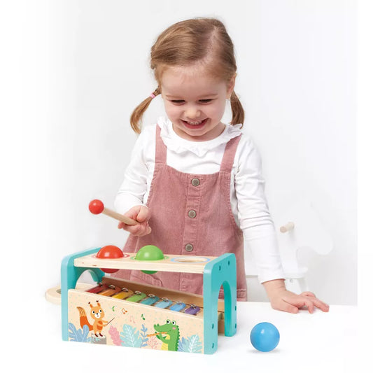- With musical toys, it's all about encouraging fine-motor skills and coordination, whether it is shaking a tambourine or holding the stick of a xylophone.