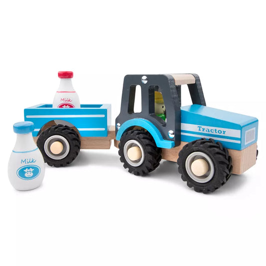 New Classic Toys Wooden Tractor with Trailer and Milk Bottles