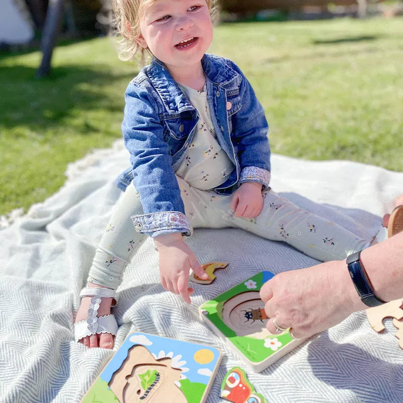 A layer wooden puzzle to discover the lifecyle of a ladybird. Inc. A 3 piece puzzle, a two piece puzzle and one piece. Great to encourage toddlers’ curiosity. 2 years+