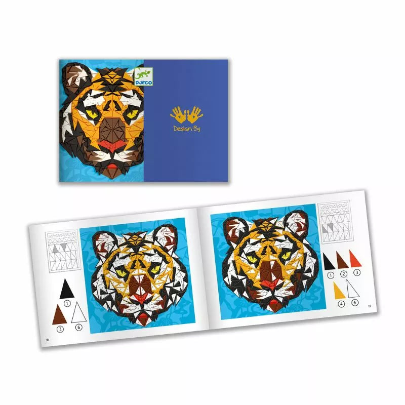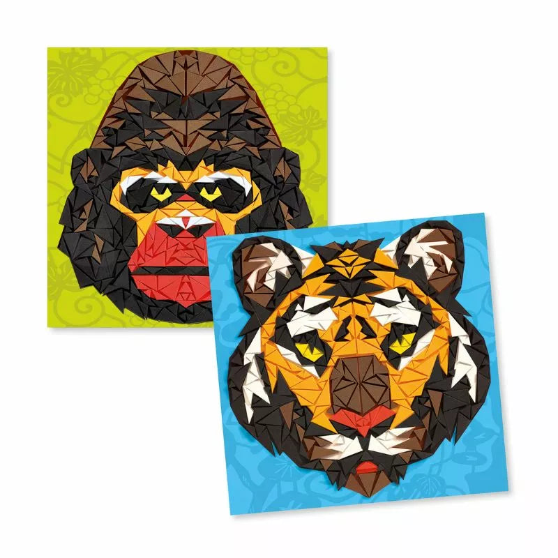 An original mosaic collage activity in which children work with triangular pieces. Following the instructions in the booklet step by step, children carefully stick the triangles of adhesive foam on the boards to create the faces of the tiger and the gorilla. From 7·12 years