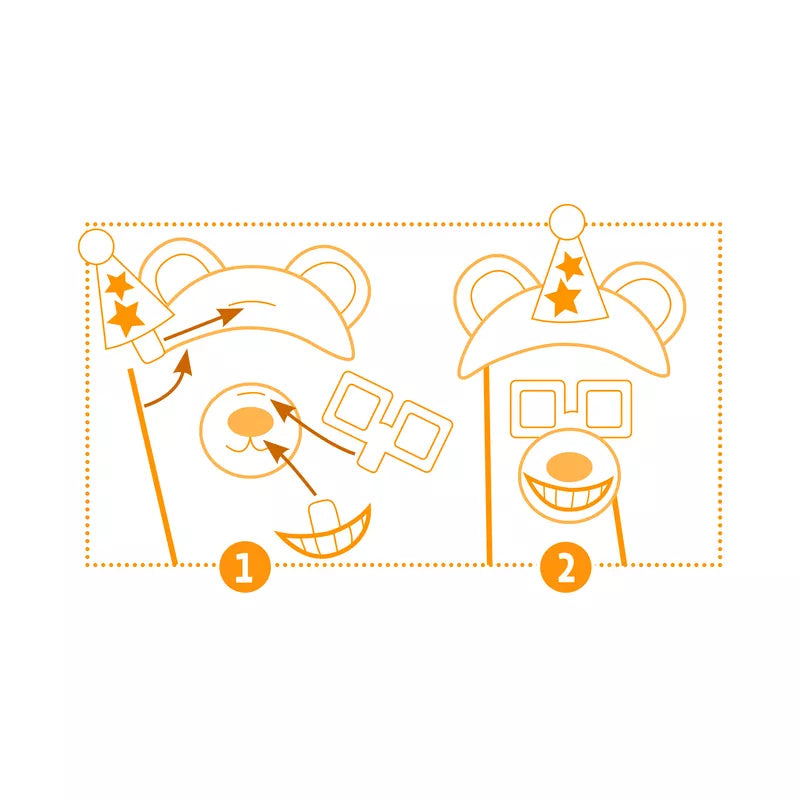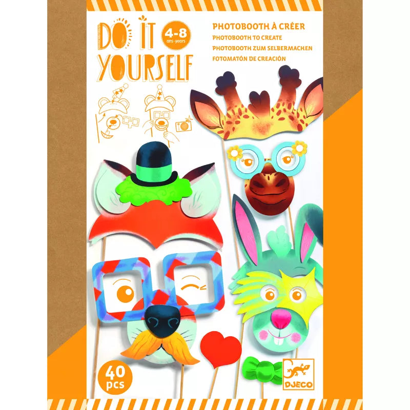 Creative kit for making a wacky photobooth. Use the 40 accessories to dress up as party animals and create some memorable photos! Just assemble and glue the cardboard pieces onto the sticks. Children just choose their accessories and then it's time for a fun-filled photo session! 4 to 8 years.