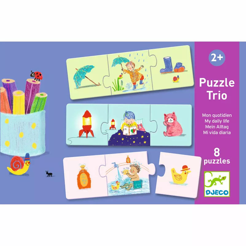 A simple, fun-filled introduction to matching games. Ideal for learning about the concepts of cause and effect, and timelines. Self-correcting puzzle: only the pieces facing the right direction will form a perfect puzzle. A colourful box that is easy to transport with its string. Contents: 8 puzzles with 3 pieces Perfect from + 2 years.