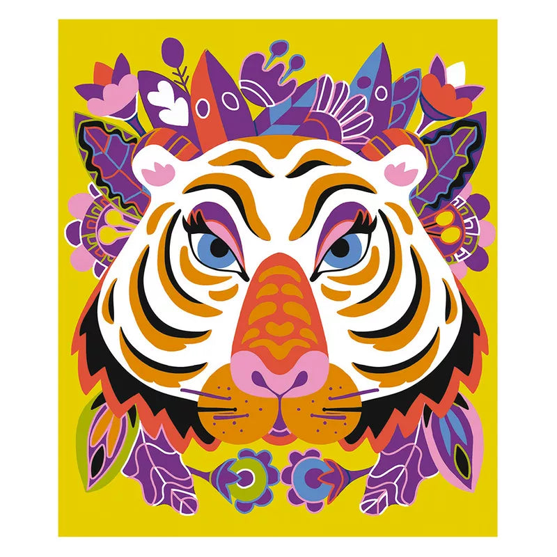 With this creative kit, your child will be able to make beautiful portraits of colorful animals and use them to decorate his room. Just scratch the pre-drawn pictures to see the animals adorn themselves with colors! This box contains: 5 scratch pictures (3 in black, 1 green, 1 purple), with color or gilding effects, 1 wooden stylus and 1 booklet with models and instructions.