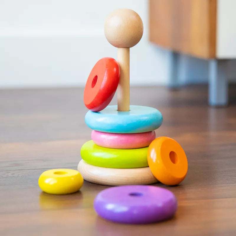A beautiful traditional wooden toy. The shapes are large enough for young ones from the age of 12 months, to hold and grasp. A 20cm tall stacking and sorting toy. 1 year+