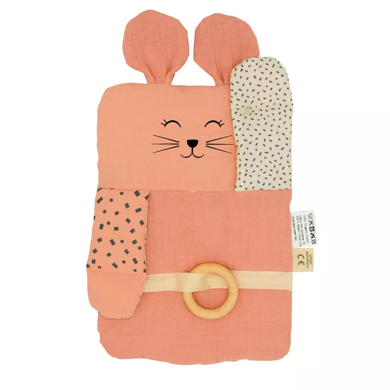Mouse organic activity toy is made from Gots certified organic cotton. It is composed of a natural beech wood ring, flap arms, a small rattle, … On the back part there are two small ribbons. It’s perfect for hanging from a stroller or crib. This game stimulates the senses of touch and grip and helps develop dexterity. As he plays, he learns to use his hands and fingers more nimbly.Composition: Materials: fabrics: 100% organic cotton (Gots certified) PEFC certified beech wood ring filling: 100% Oeko-Tex polyester Paint: water-based ECO PASSPORT certified by OEKO-TEXAge: Suitable from 0 plusLavage: Hand washingNormes: Complies with the quality standards required by the European Union EN71 (1-2-3)